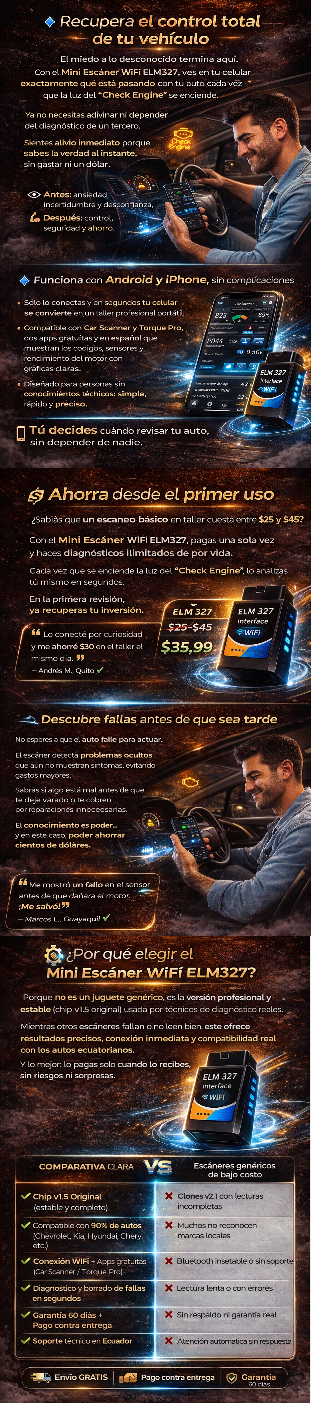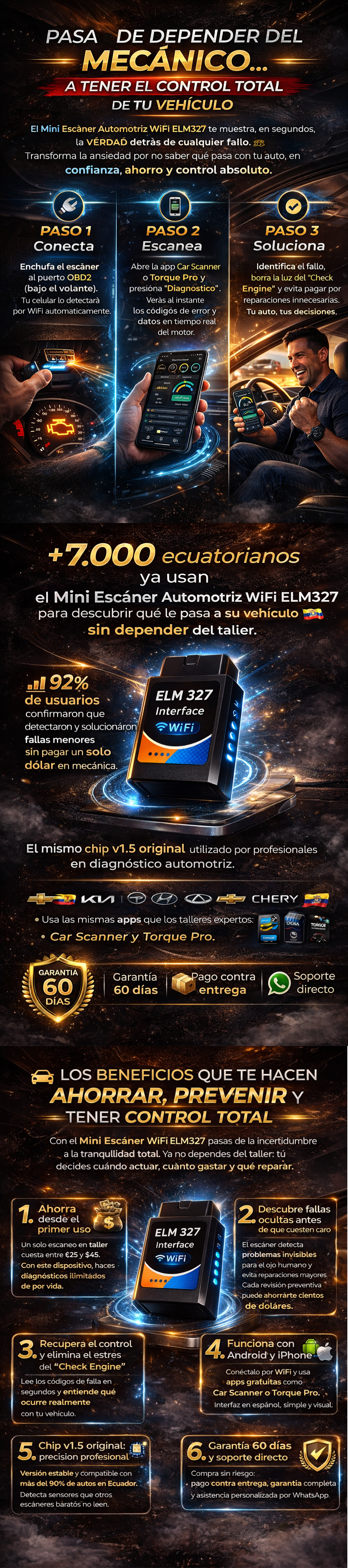 "Ya no voy al mecánico a ciegas. Ahora yo le digo cuál es el código de falla. Excelente inversión para no dejarse ver la cara. 100% recomendado."